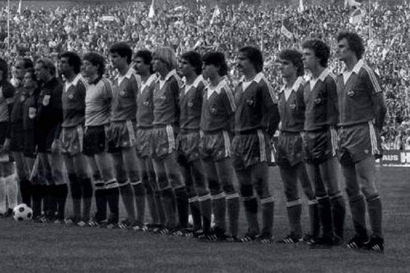 Vlnr : Cullmann - Schumacher - Neumann - Schuster - Willmer - Zimmermann - Konopka - Prestin - Littbarski - Woodcock - Müller