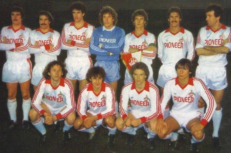 Unten vlnr : D.Müller - Woodcock - Engels - Littbarski - Prestin - Botteron