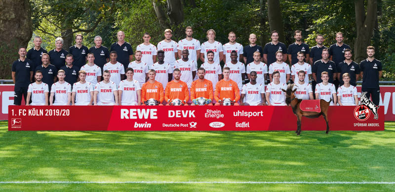 Mitte vlnr : Gisdol - Kaspari - Pawlak - Meré - Höger - Schindler - Risse - Modeste - Hector - Cordoba - Uth - Drexler - Menger - Weuthen - Mörschel