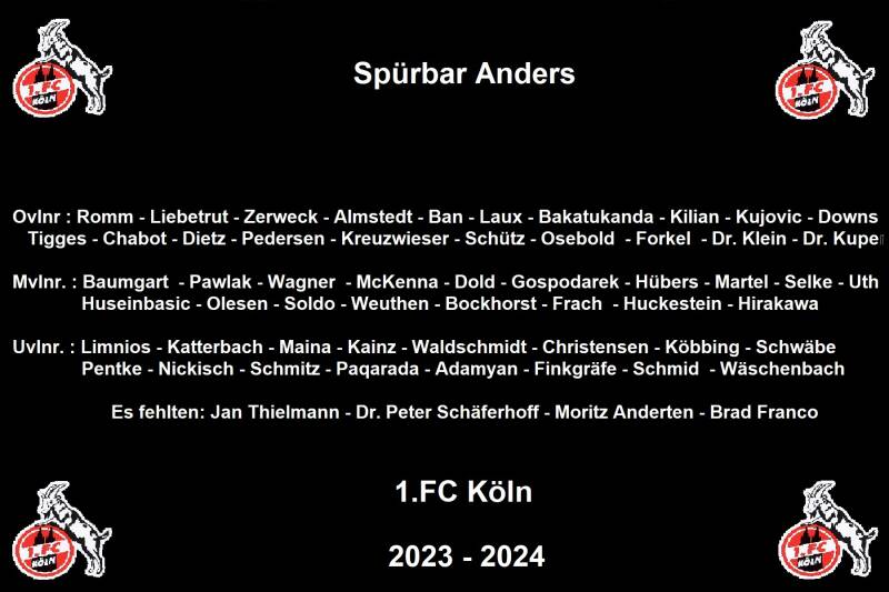 Es fehlten: Jan Thielmann (Reha), Dr. Peter Schäferhoff (Mannschaftsarzt), Moritz Anderten (Psychologe), Brad Franco (Yogatrainer)