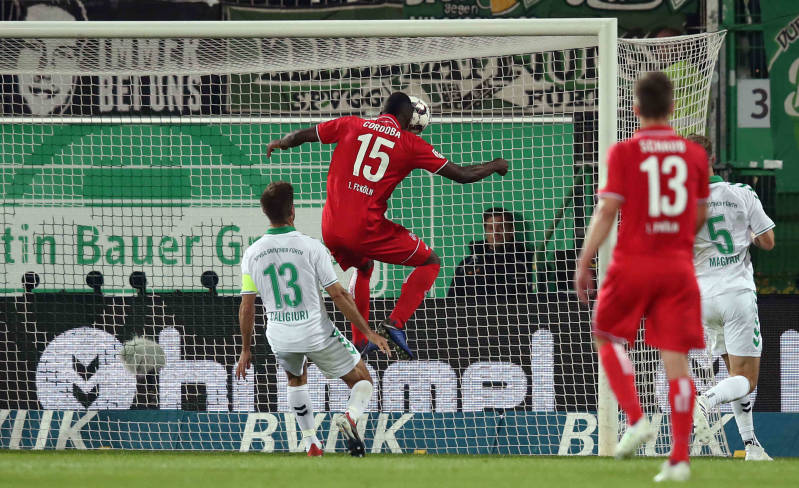 Torschutze Jhon Cordoba geniesst noch mal alleine