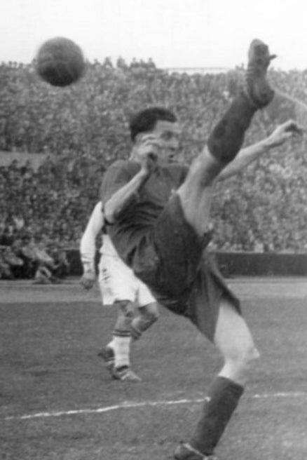FC-Spieler : Vorne links Dörner , dahinter : Langen und links hinten Graf