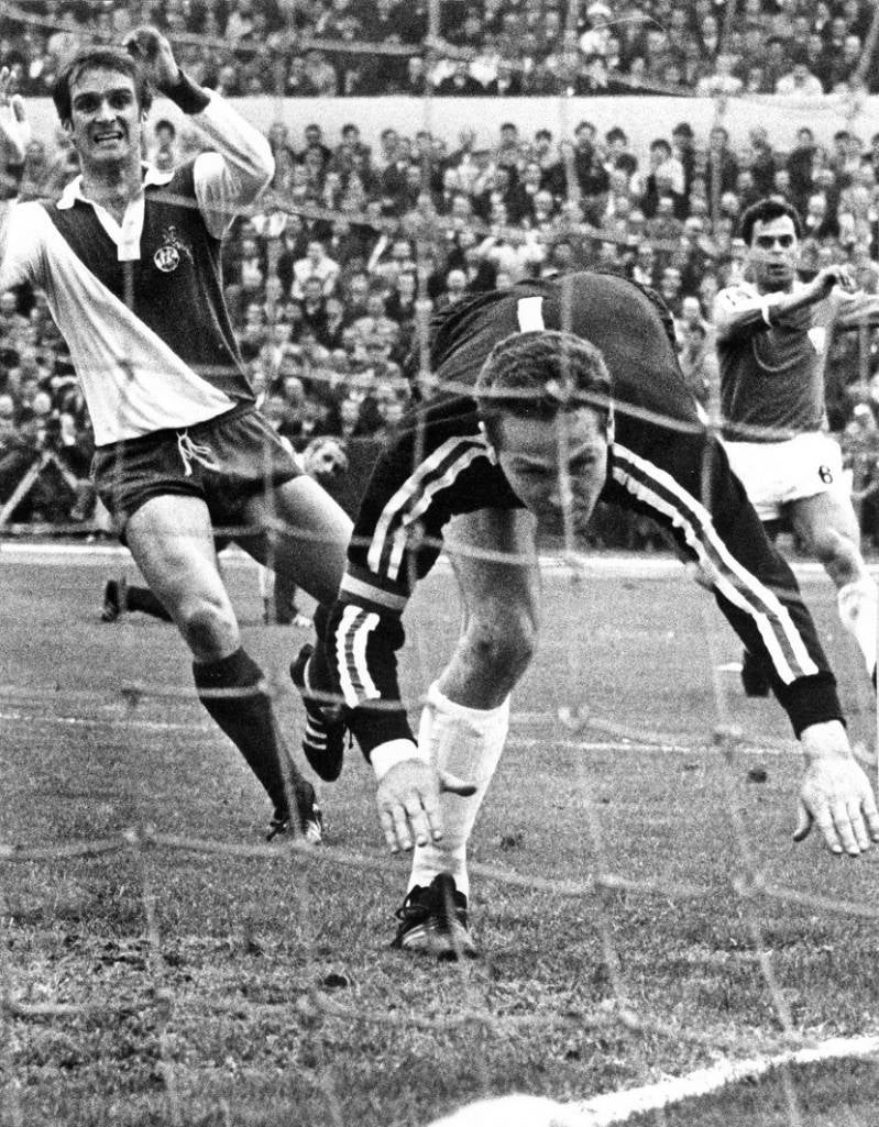 Das 1-0 fur unseren FC durch ein eigentor , rechts Wolfgang Overath im hintergrund links Carl-Heinz Rühl