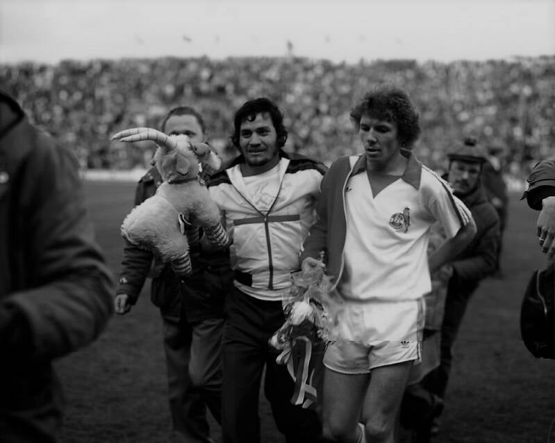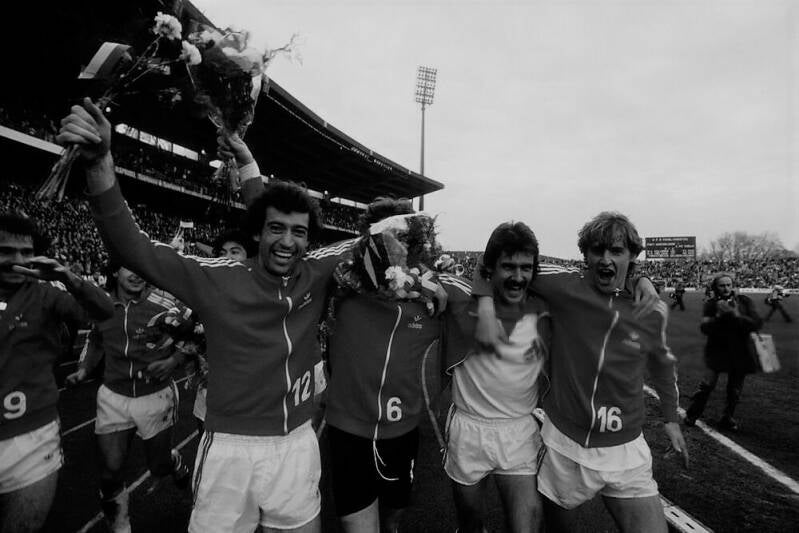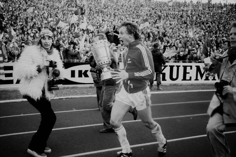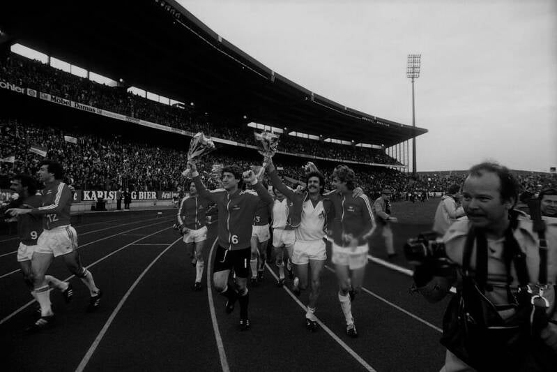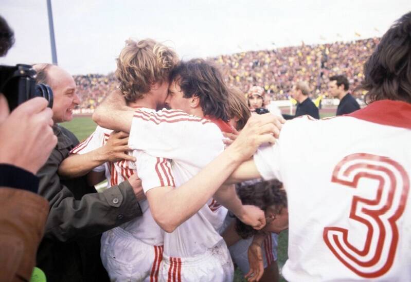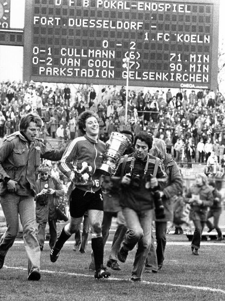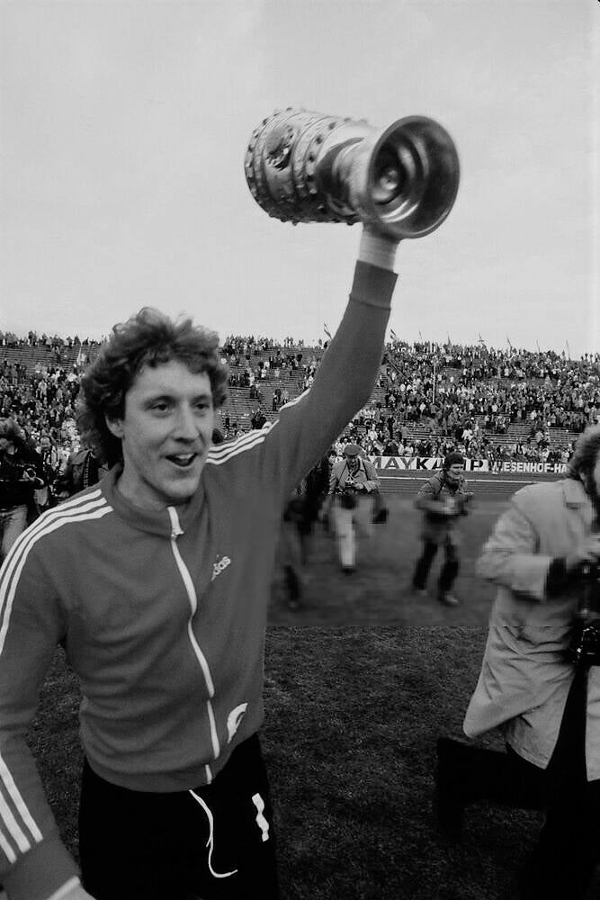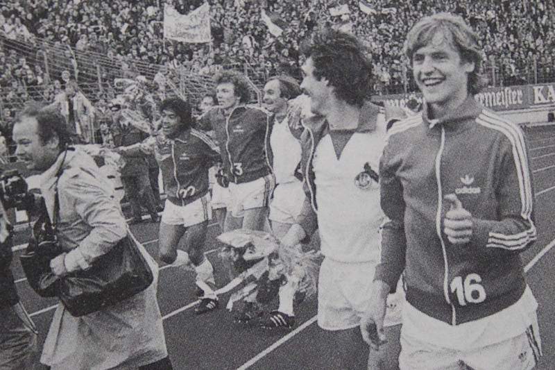 Harald "Toni" Schumacher freut sich uber die Führung