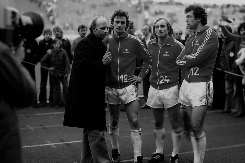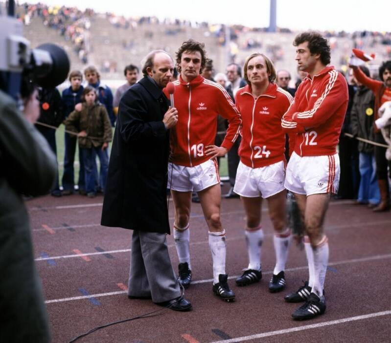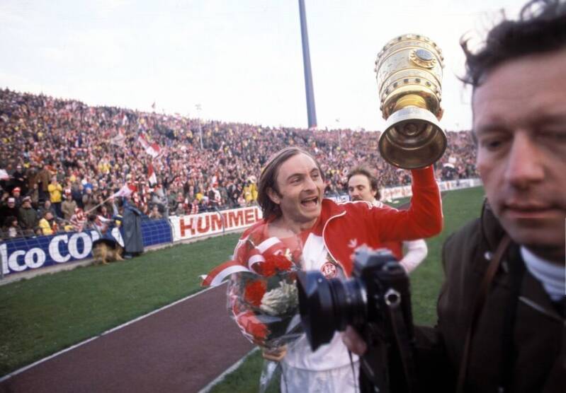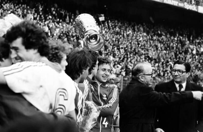 Herbert Zimmermann mit dem Pokal - Bernd Cullmann - Heinz Flohe