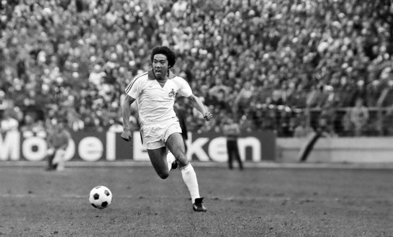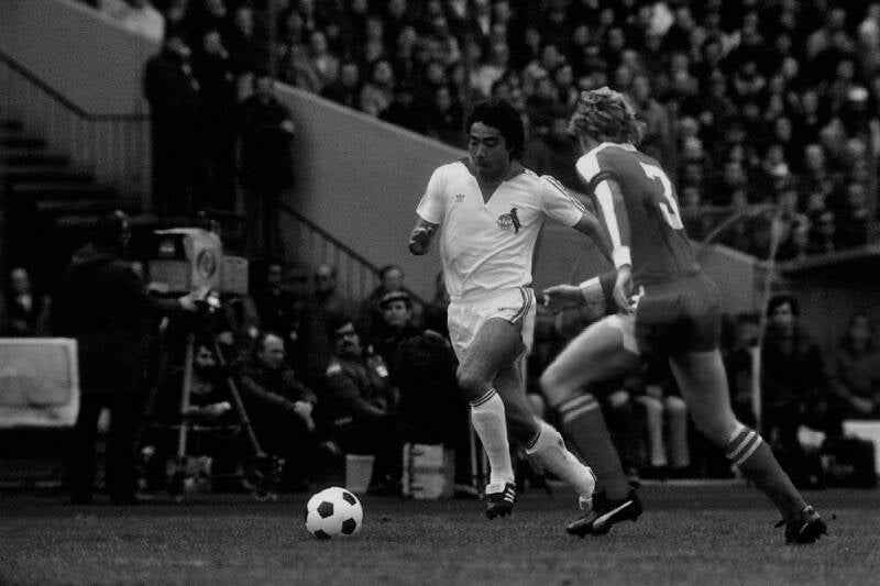 Heinz Flohe im Angriff , dahinter Yasuhiko Okudera