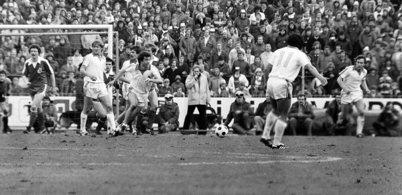 Freistoss geschossen durch Heinz Flohe