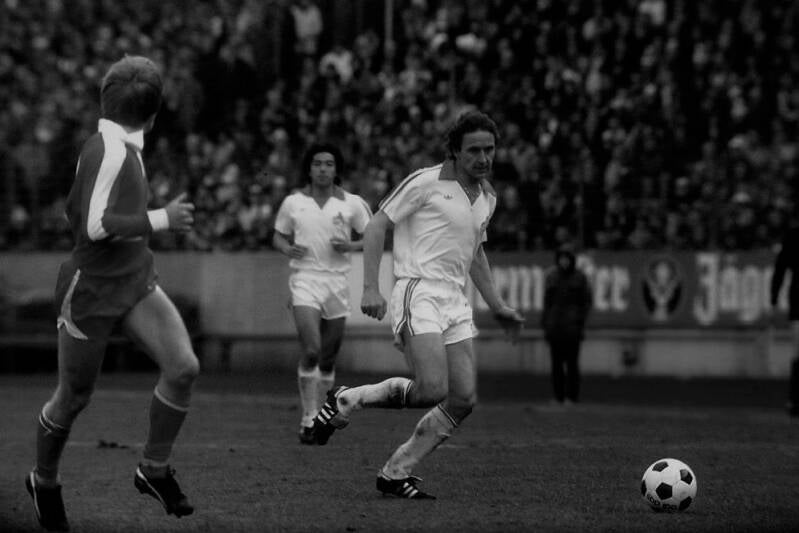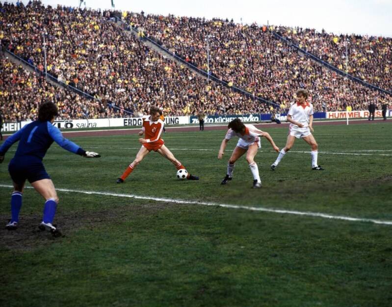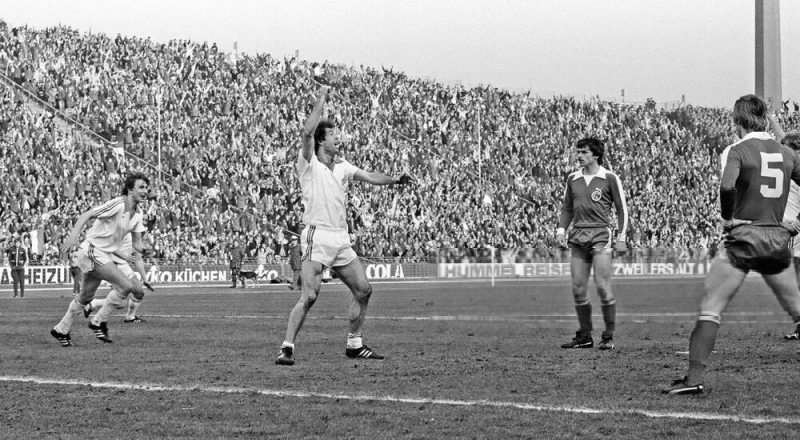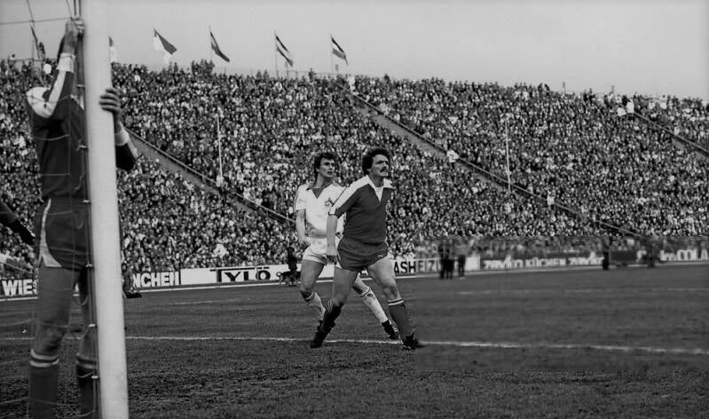 Dieter Müller wartet auf denn Ball und schleicht sich weg