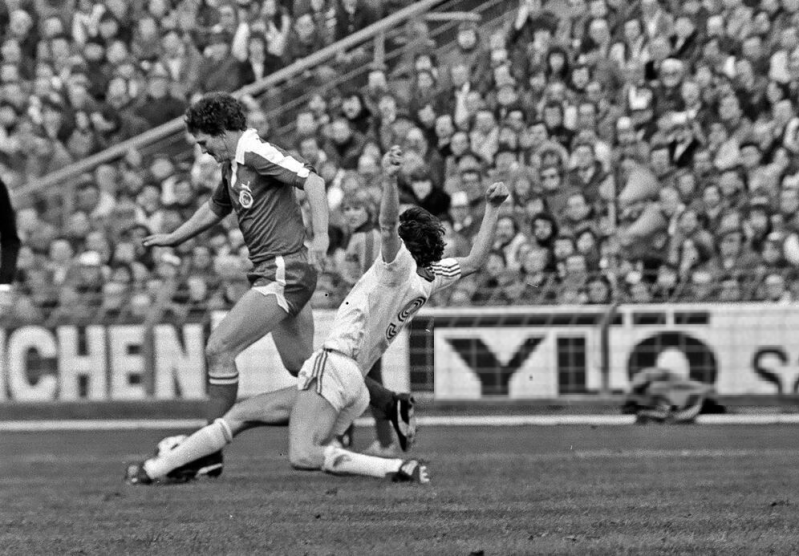 Dieter Müller im Zweikampf und in Manndeckung Genommen