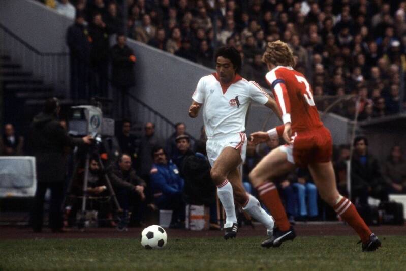 Heinz Flohe mit blick auf dem Gegner , davor Yasuhiko Okudera