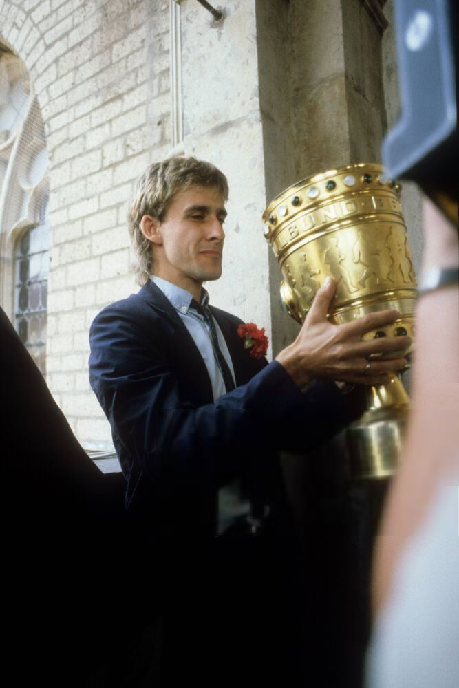 Prost , Torschutze Pierre "Litti" Littbarski mit dem Pokal
