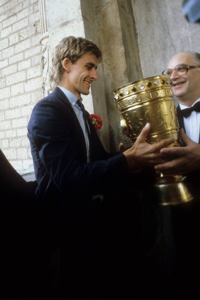 Pierre "Litti" Littbarski mit dem Pokal