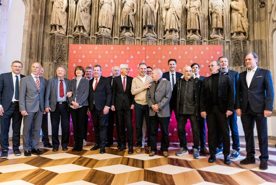 75 Jahre 1. FC Köln, Empfang im historischen Rathaus, Vorstand, Geschäftsführung und ehemalige Spieler,