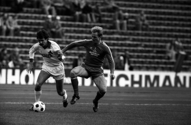 Herbert Zimmermann im Jahr 1980 dahinter Bernd Schuster