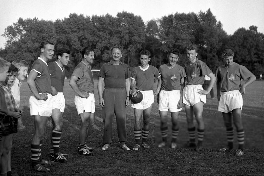 Trainer Oswald Pfau im Jahr 1960 zusammen mit Torhuter Fritz Ewert und Torwart Günter Klemm