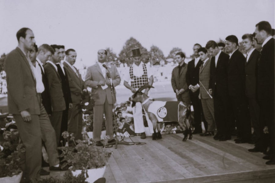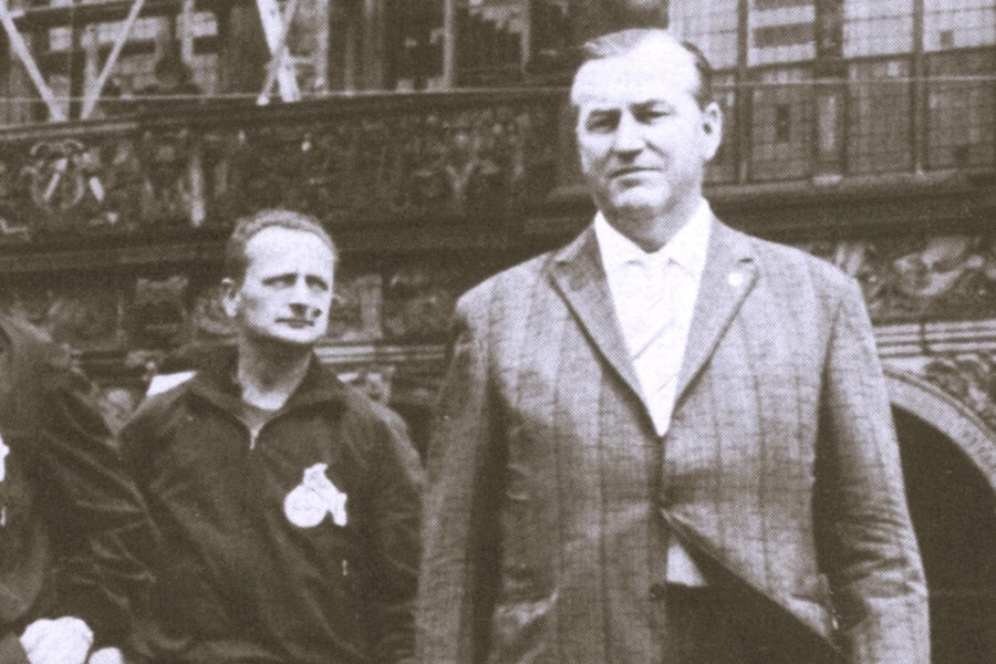 Trainer Oswald Pfau im Jahr 1960 zusammen mit Präsident Franz Kremer (2.von links)