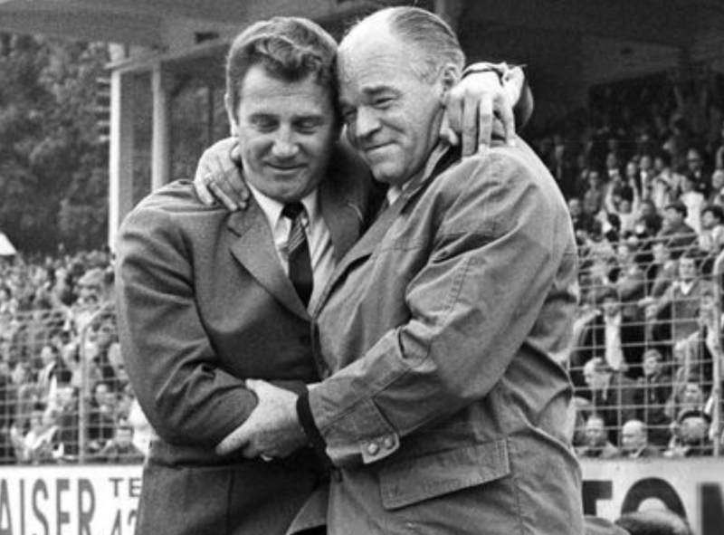 Hans Merkle im Jahr 1968 zusammen mit Wolfgang Overath