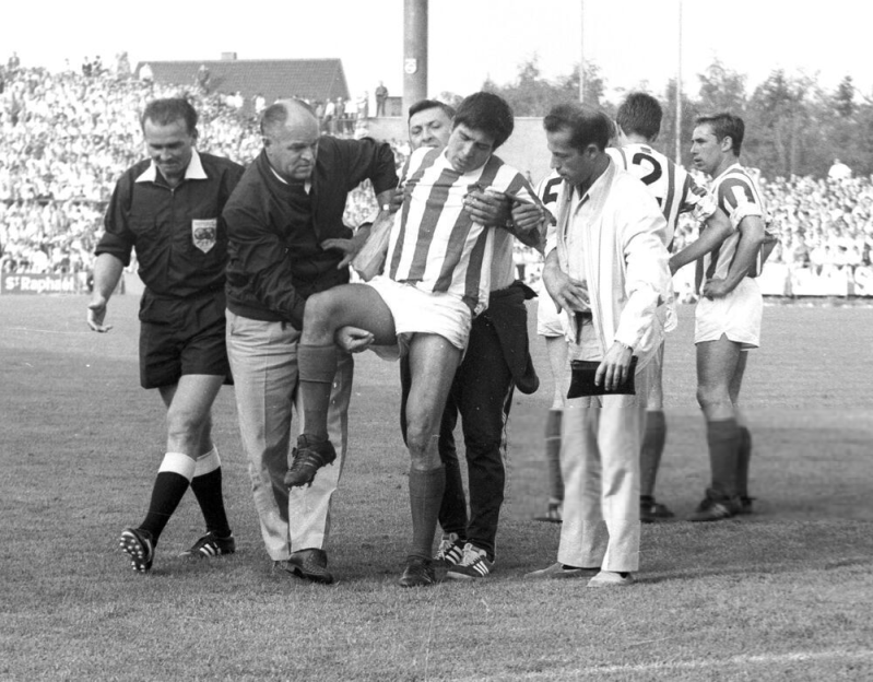 Hans Merkle im Jahr 1969 hilft den verletzten Peter Blusch