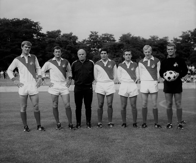 Hans Merkle im Jahr 1969 , links auf der bank Peter Blusch und Heinz Flohe