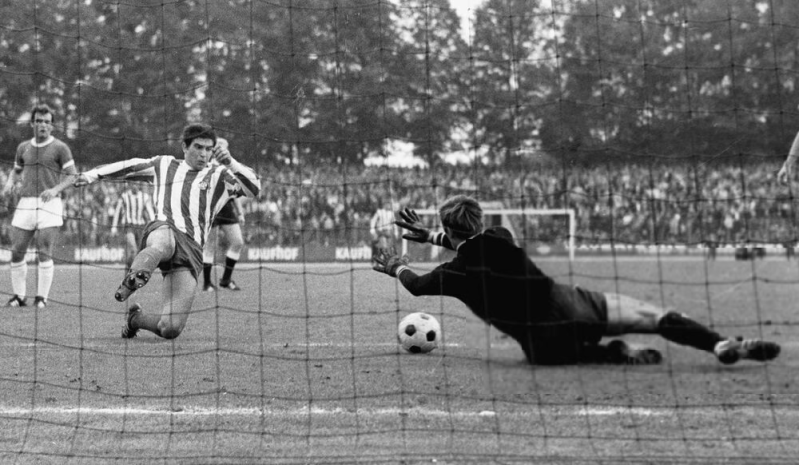 Werner Biskup im Jahr 1971 beim Elfmeter Tor