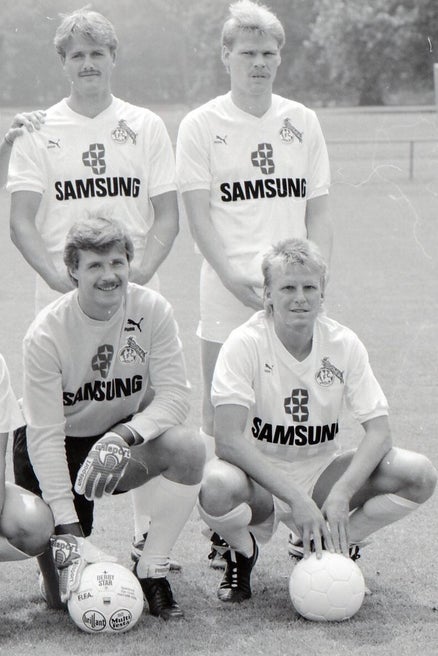 Hans-Georg Dressen im Jahr 1990 zusammen mit Armin Görtz und Bodo Illgner