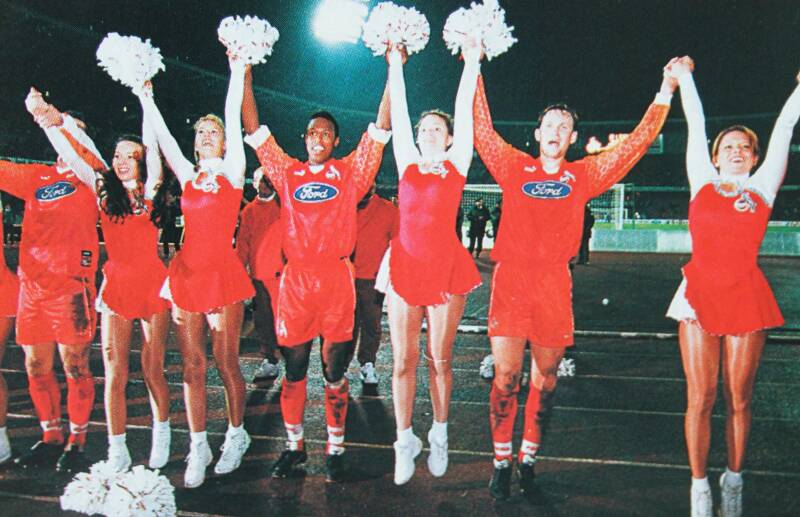 Pablo Thiam im Jahr 1997 zusammen mit die FC-Cheerleaders