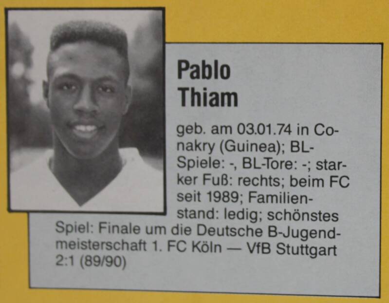 Pabol Thiam kam 1989 aus der Jugend von MSV Bonn zum 1.FC Köln (B-Jugend).