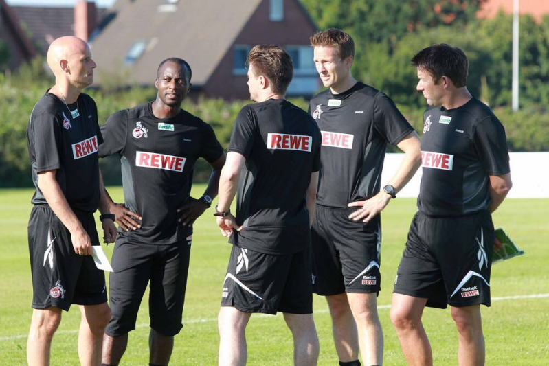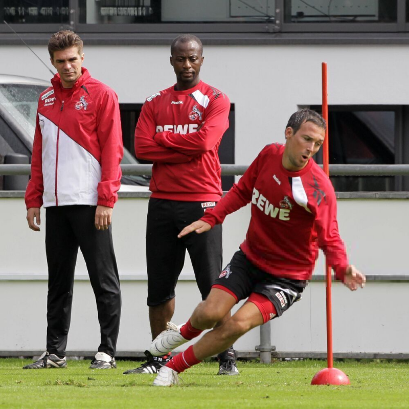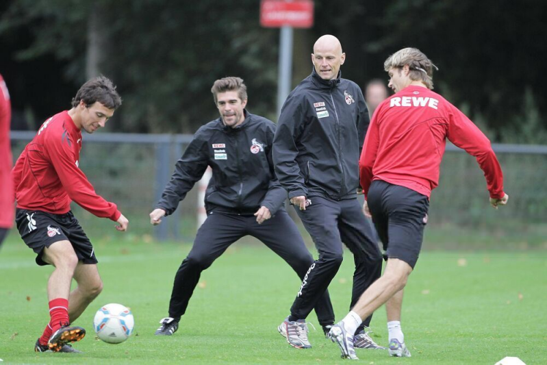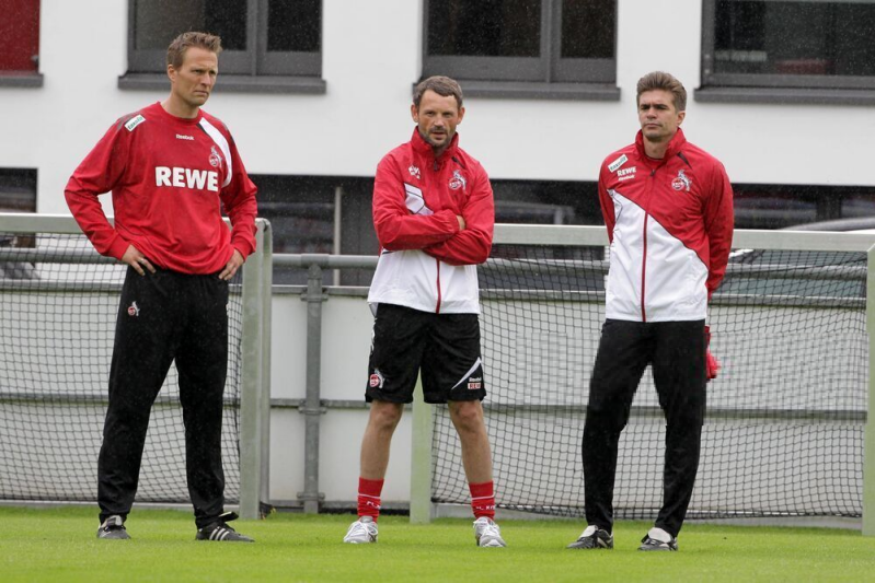 Patrick Weiser als Trainer-Assistent im Jahr 2011 , links Mark Uth und rechts Timo Horn