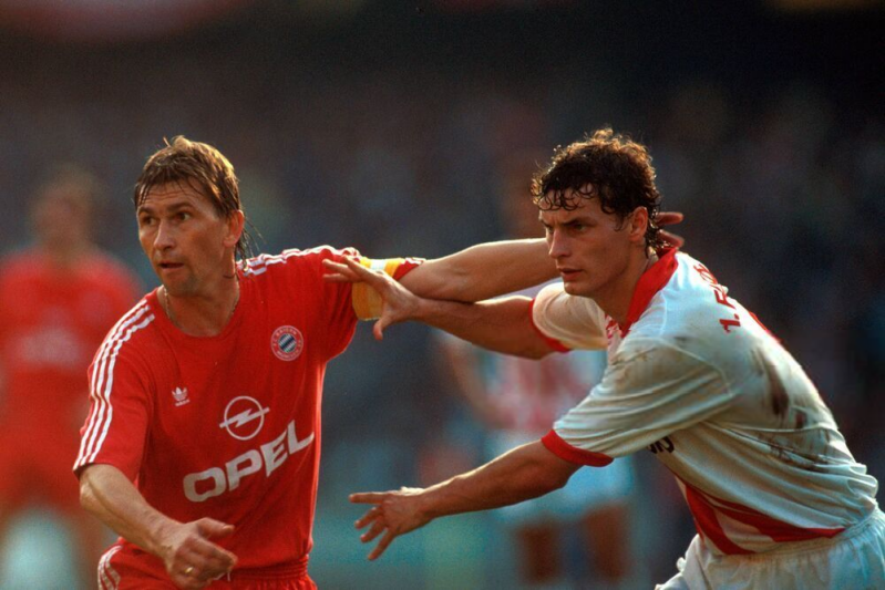 Ralf Sturm im Jahr 1991 beim DFB-Pokalendspiel , rechts Karsten Baumann