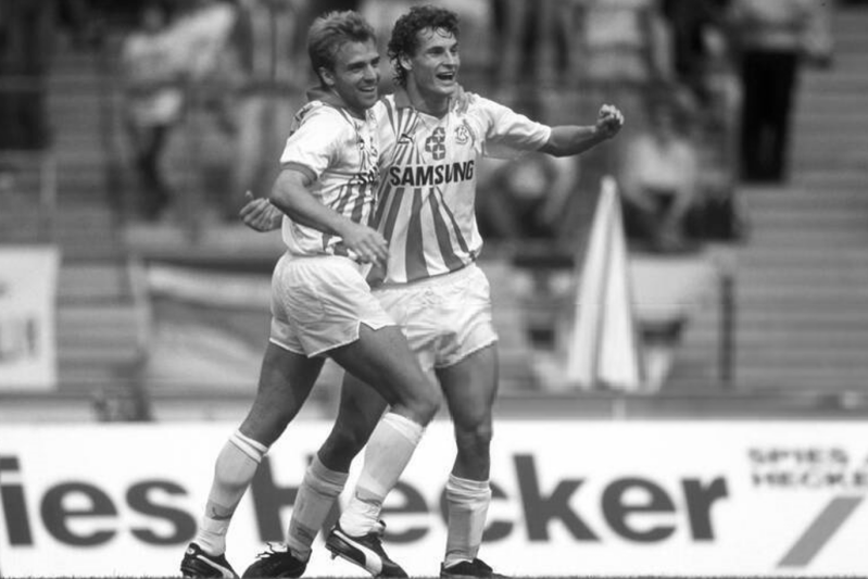 Ralf Sturm im Jahr 1990 zusammen mit Hans-Dieter Flick und Pierre Littbarski