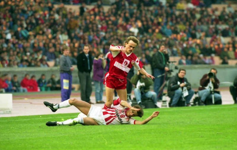 Ralf Sturm im Jahr 1991 beim DFB-Pokalendspiel , in der mitte Karsten Baumann