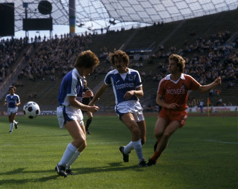 Anthony Woodcock im Jahr 1980 , links Dieter Müller