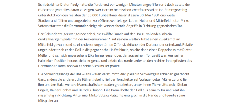 Und beim 2-2 in Dortmund am 30.05.1981 gelang ihm in Dortmund sogar der Führungstreffer zum 1-0 in der 12.Minute.