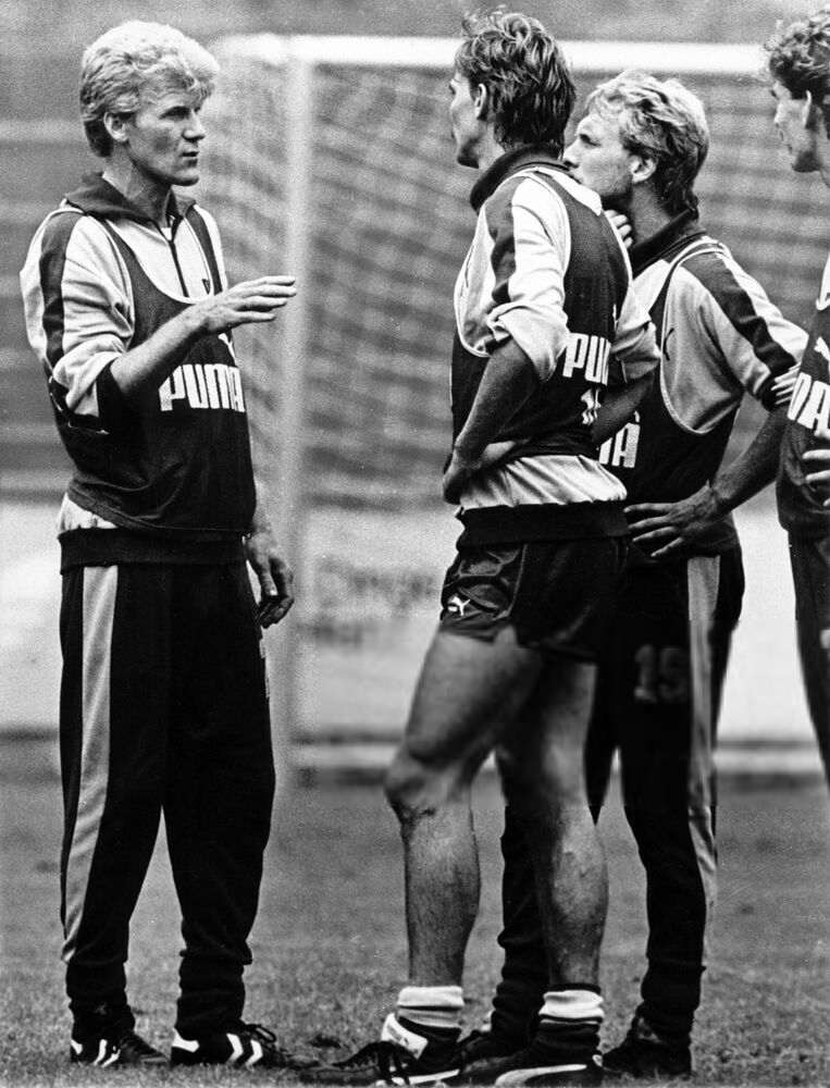 Morten Olsen im Jahr 1989 , davor Paul Steiner
