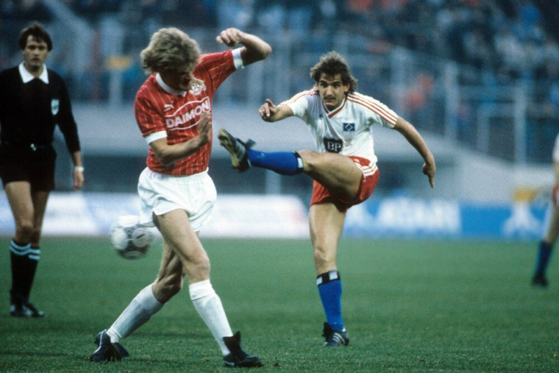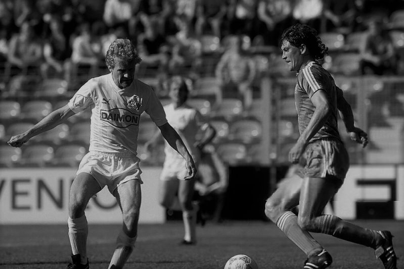 Morten Olsen im Jahr 1986 zusammen mit Thomas Allofs