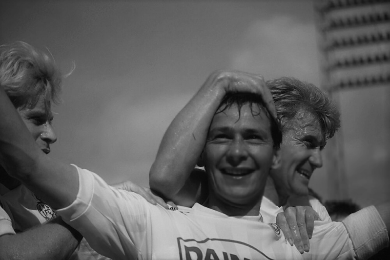 Morten Olsen im Jahr 1986 zusammen mit Armin Görtz und Thomas Allofs
