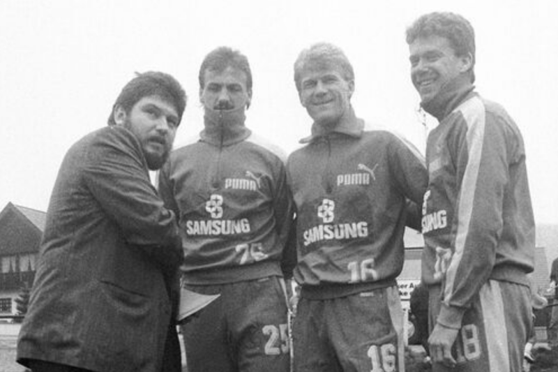 Morten Olsen im Jahr 1986 zusammen mit Paul Steiner und Matthias Hönerbach