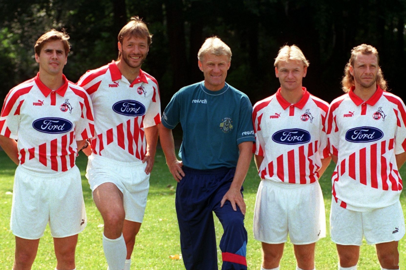 Vlnr. : Thomas Allofs - Morten Olsen - Armin Görtz - Trainer Georg Kessler - Michael Wollitz - Anthony Woodcock