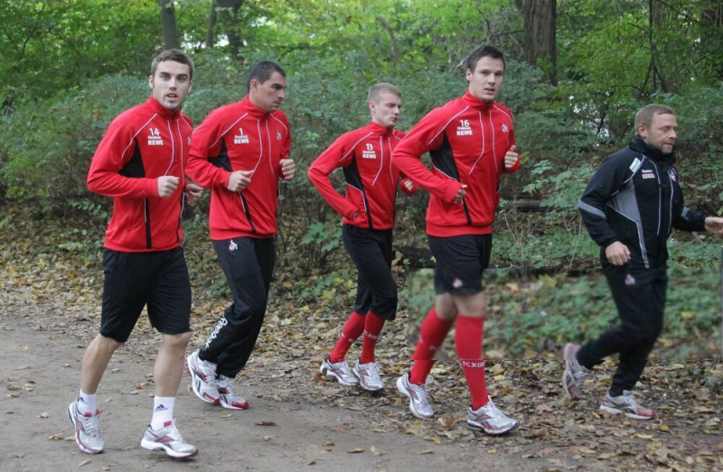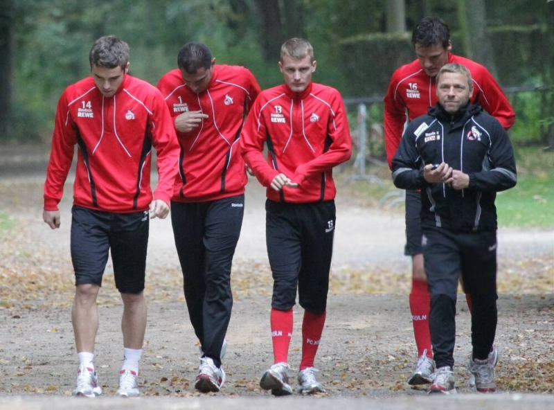 Thomas Hässler im Jahr 2011 als Techniktrainer zusammen mit Mark Uth und Petit