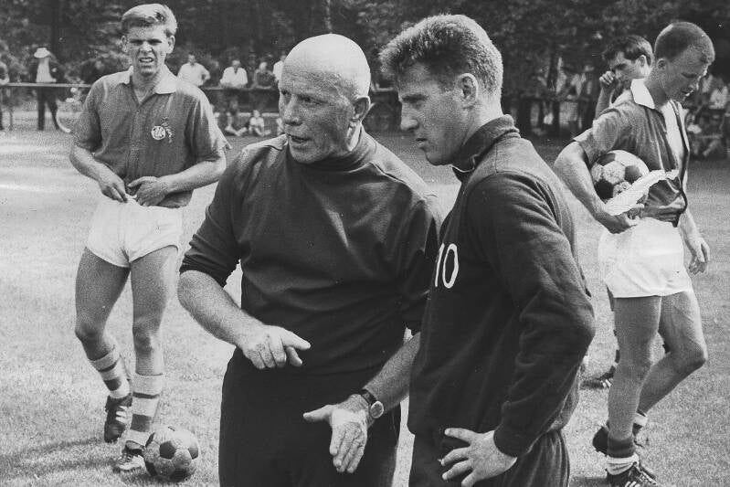 Trainer Georg Knöpfle im Jahr 1964 bei eine Zusprache beim Training