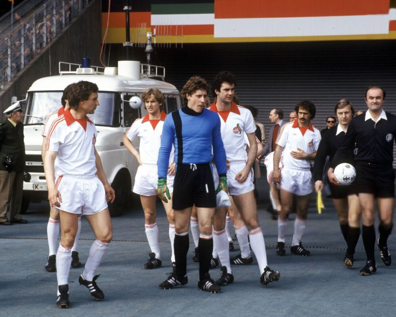 Kapitän Gerd Strack im Jahr 1982 zusammen mit Harald "Toni" Schumacher und Paul Steiner
