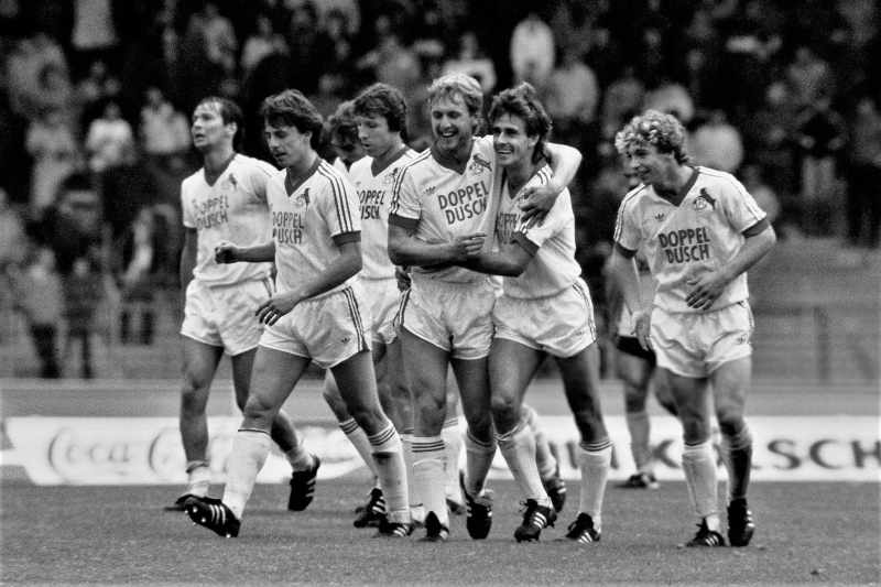 Vlnr : Littbarski - Schumacher - Steiner - Zimmermann - Hartmann - Haas - Prestin - Reif - Fischer - Hönerbach - Allofs