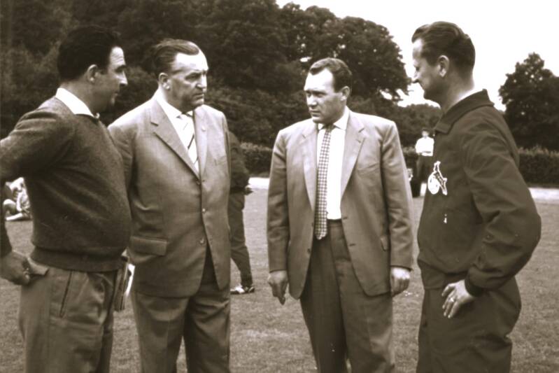 Trainer Oswald Pfau im Jahr 1960 zusammen mit Präsident Franz Kremer (2.von links)