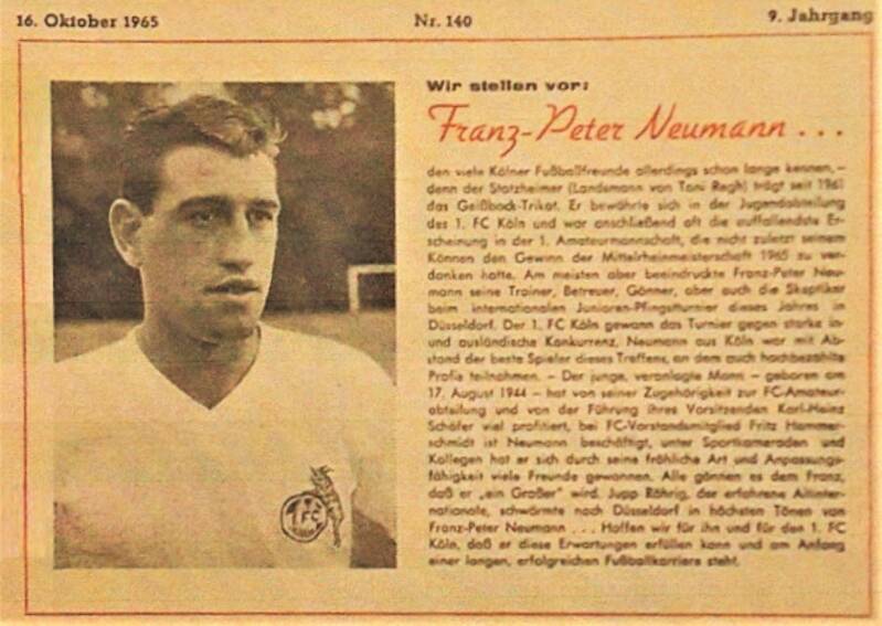 Ab dem 16.Lebensjahr spielte F-P. Neumann in der Jugendabteilung des 1.FC Köln ,