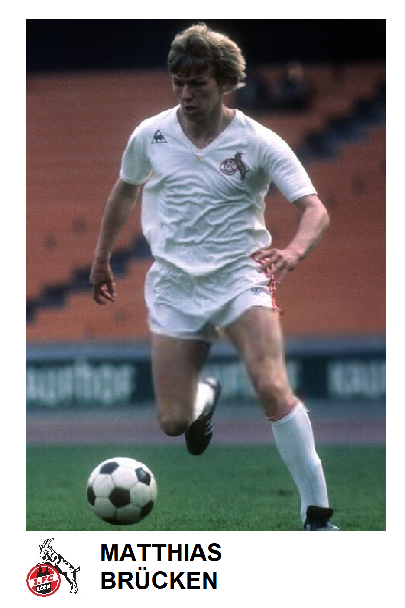 Matthias Brücken stieg 1975 mit Bayer 04 Leverkusen in die 2. Bundesliga auf und empfahl sich durch seine starken Leistungen für einen Wechsel zum 1. FC Köln.