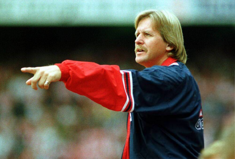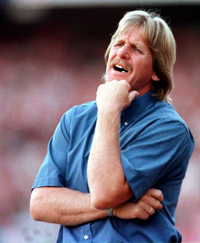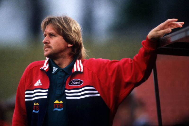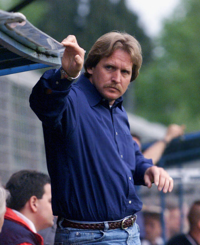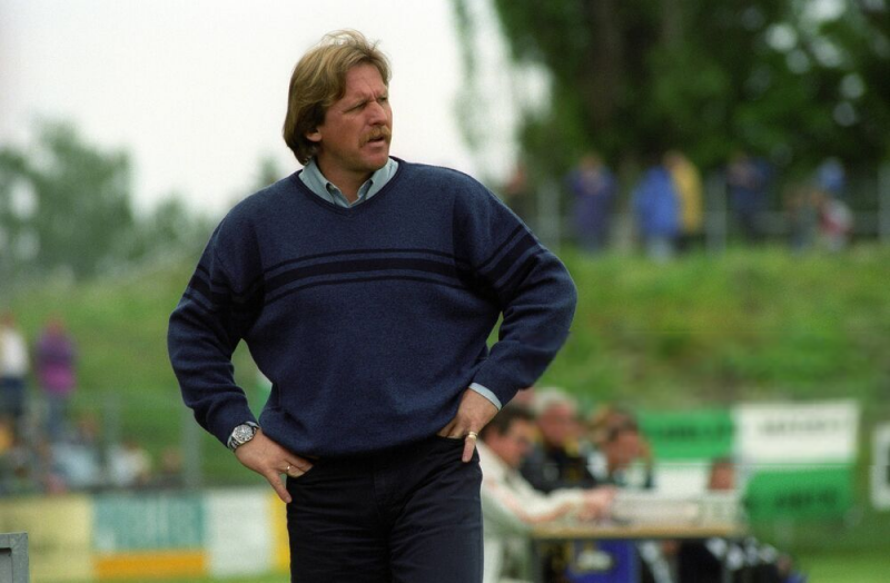 Trainer Bernd Schuster im Jahr 1998 im Gespräch mit Dirk Lottner