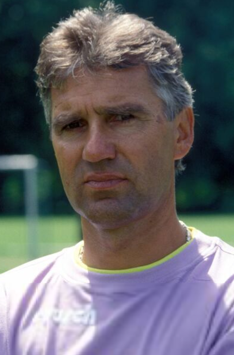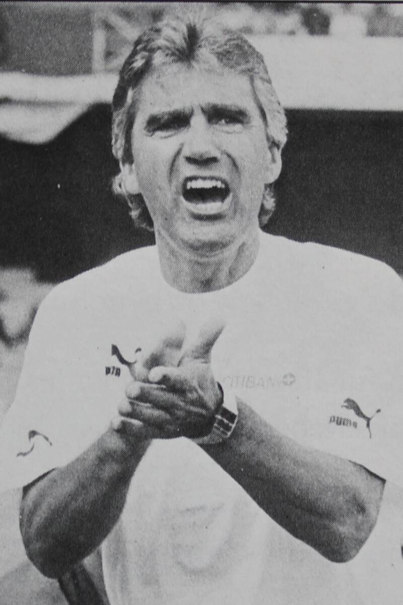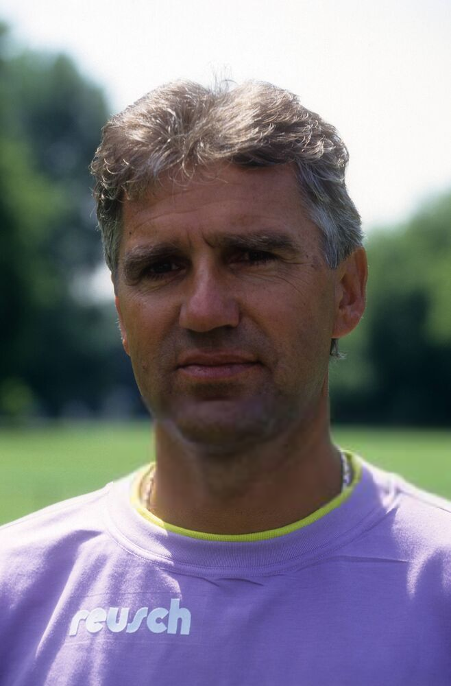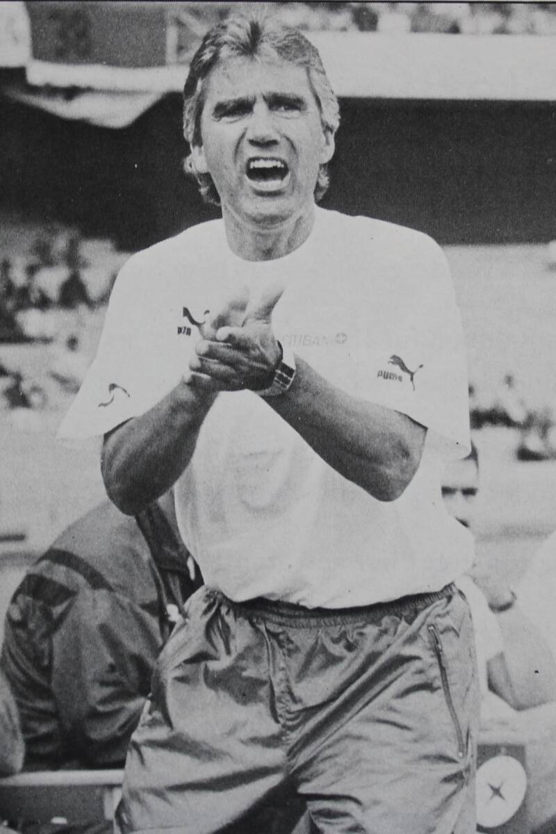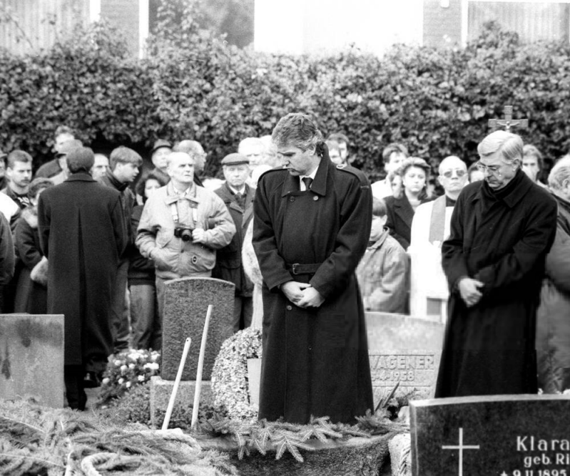 Trainer Jörg Berger im Jahr 1991 bei der Beerdigungn von Mauroce ,,Mucki" Banach