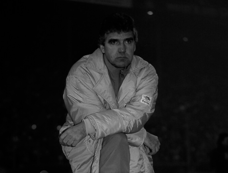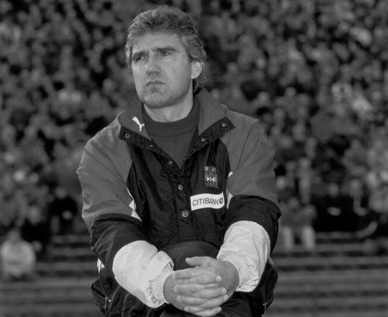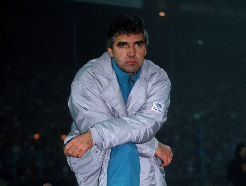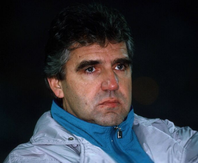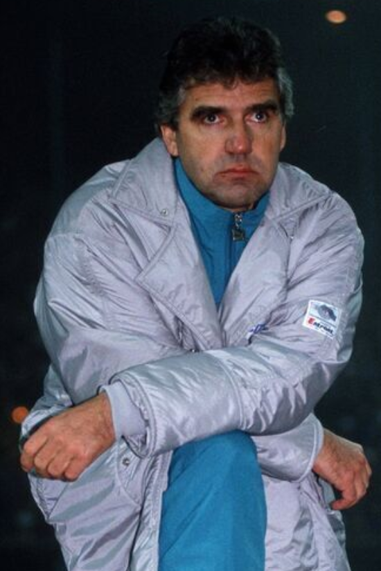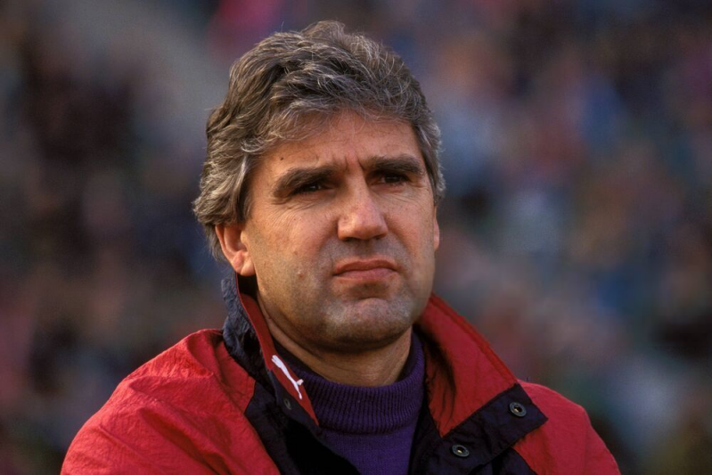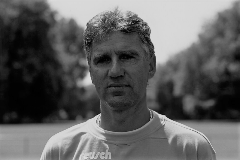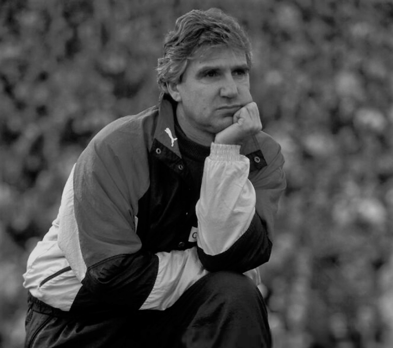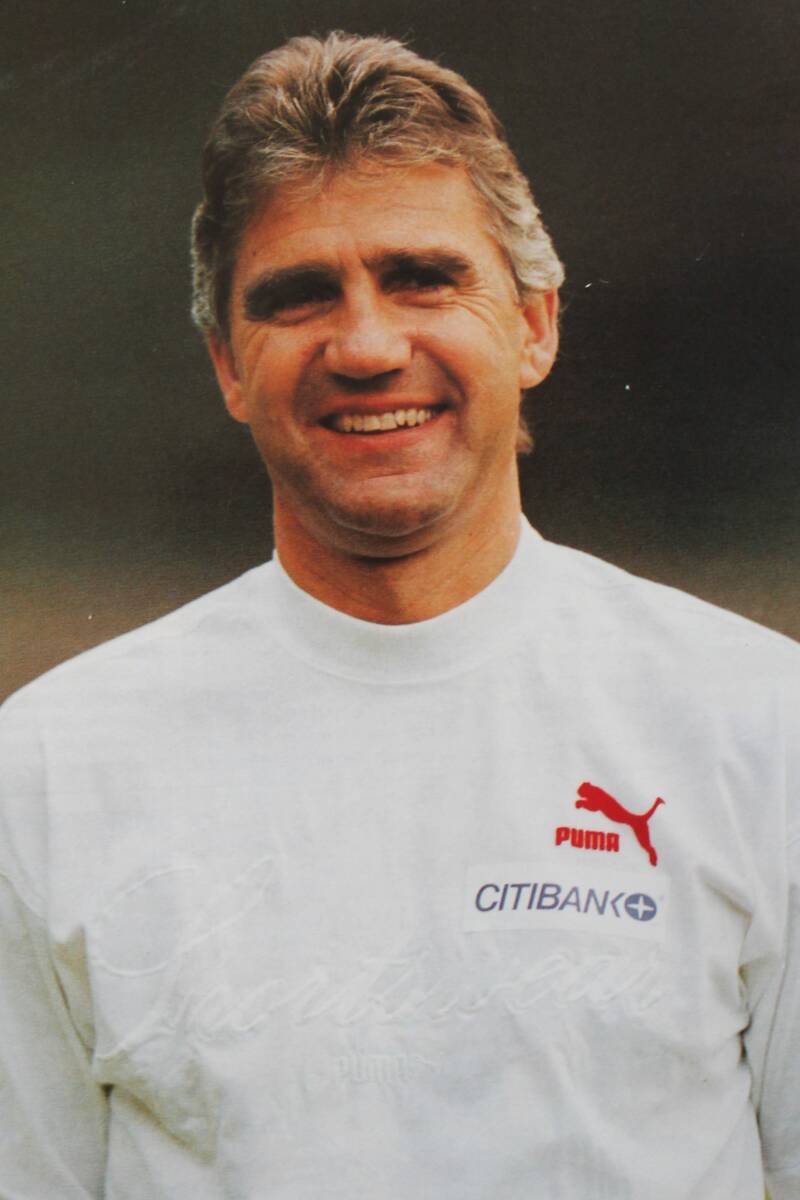 Trainer Jörg Berger im Jahr 1991 bei der Beerdigungn von Mauroce ,,Mucki" Banach