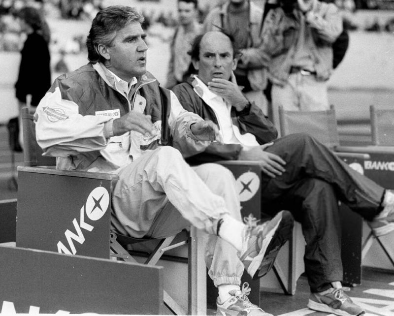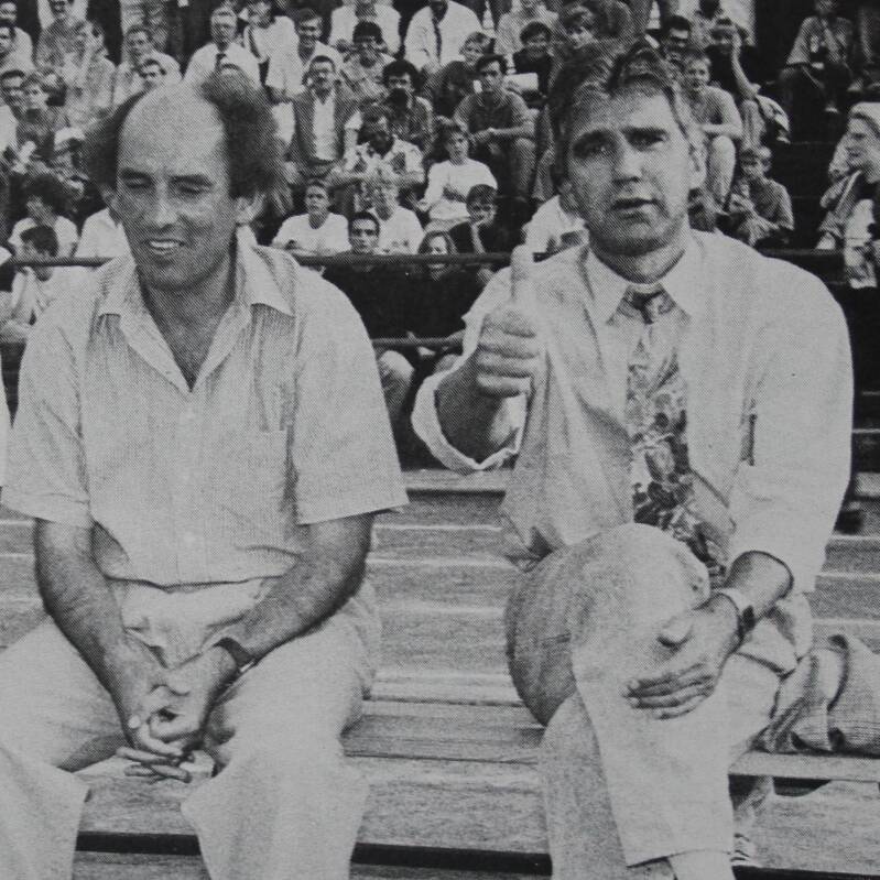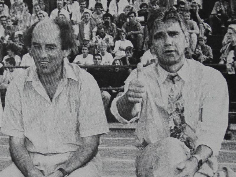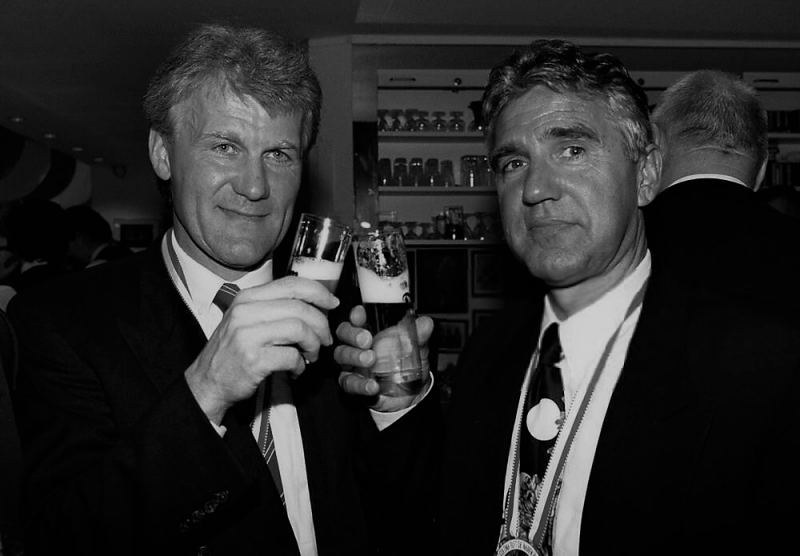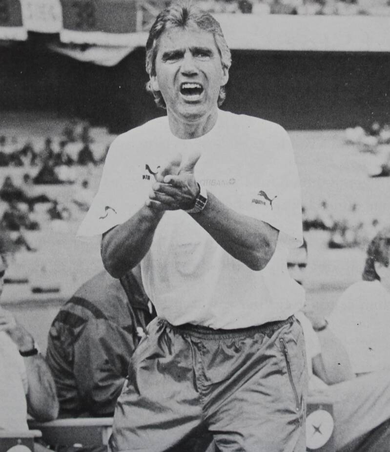 Trainer Jörg Berger im Jahr 1991 zusammen mit Co-Trainer Hannes Linssen