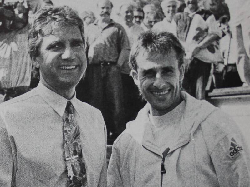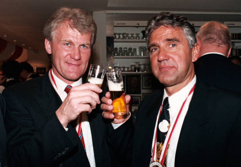 Trainer Jörg Berger im Jahr 1993 zusammen mit Morten Olsen